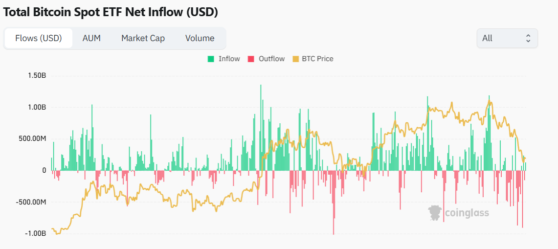 - Spot Bitcoin ETF: раньше фонды покупали миллиардами, теперь продают;
