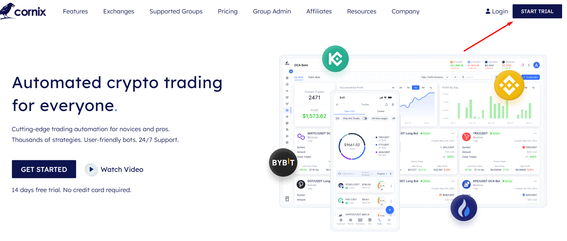 - Переходим на официальный сайт cornix.io (остерегайтесь подделок!)