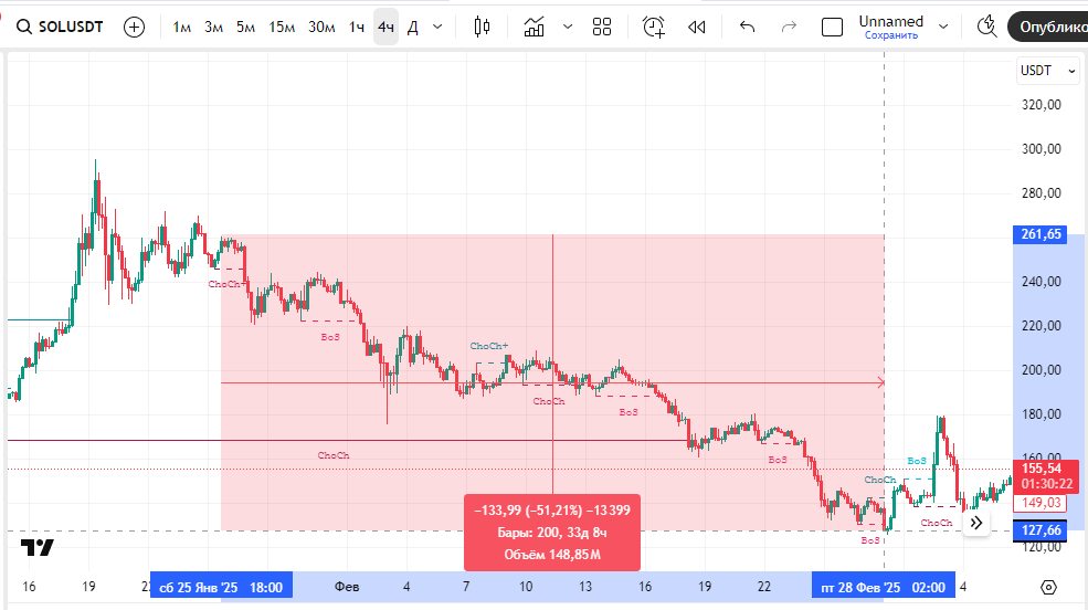 Другой трейдер не поставил stop — рассчитывал “пересидеть” коррекцию по SOL. Вход — по $261.