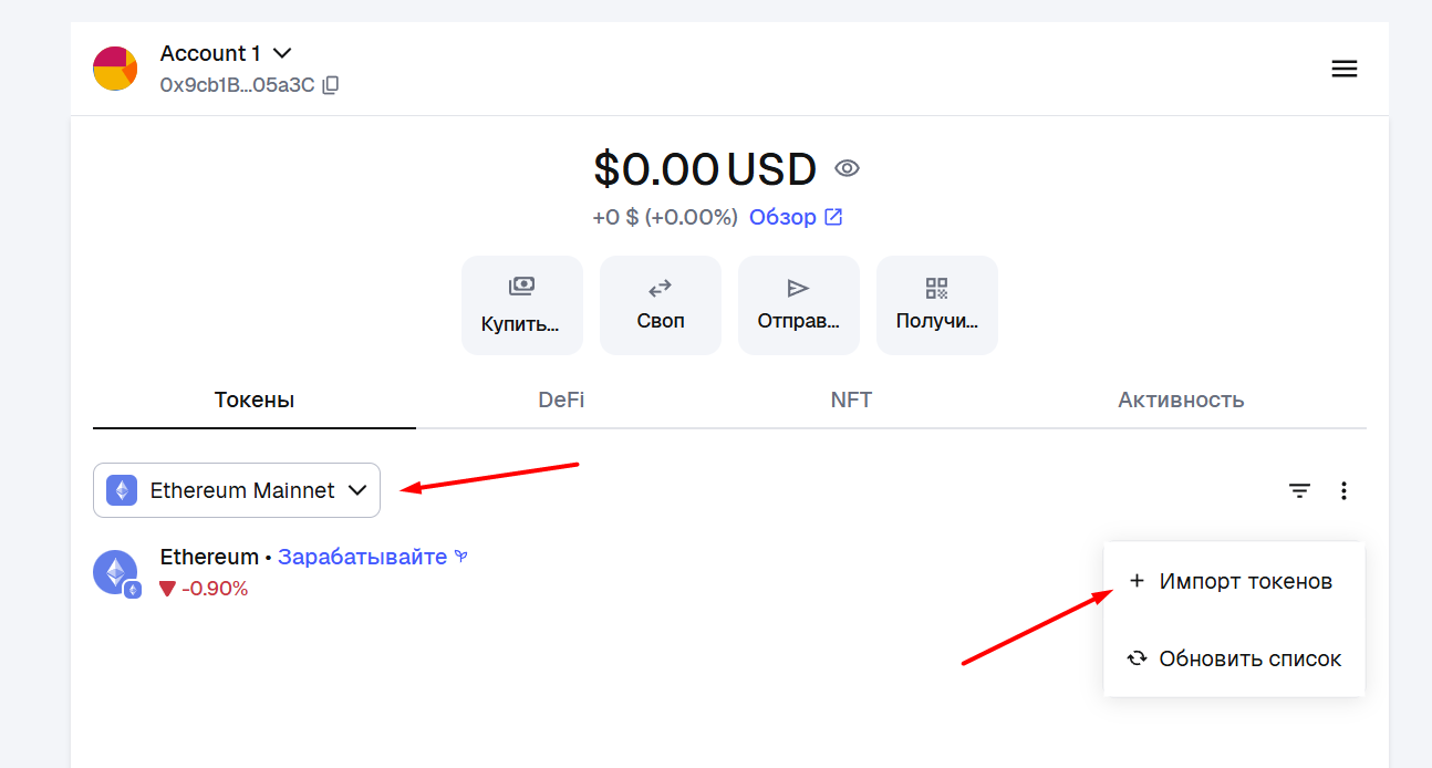 Нажмите “Import tokens” внизу интерфейса.