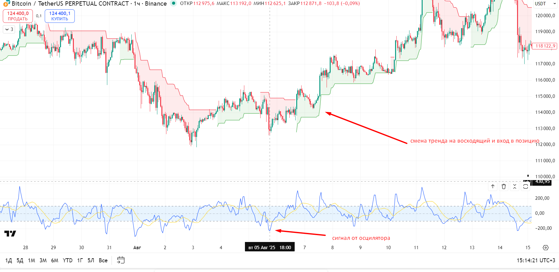 Без осциллятора мы бы просто ждали, а с ним увидели момент для входа внутри тренда.