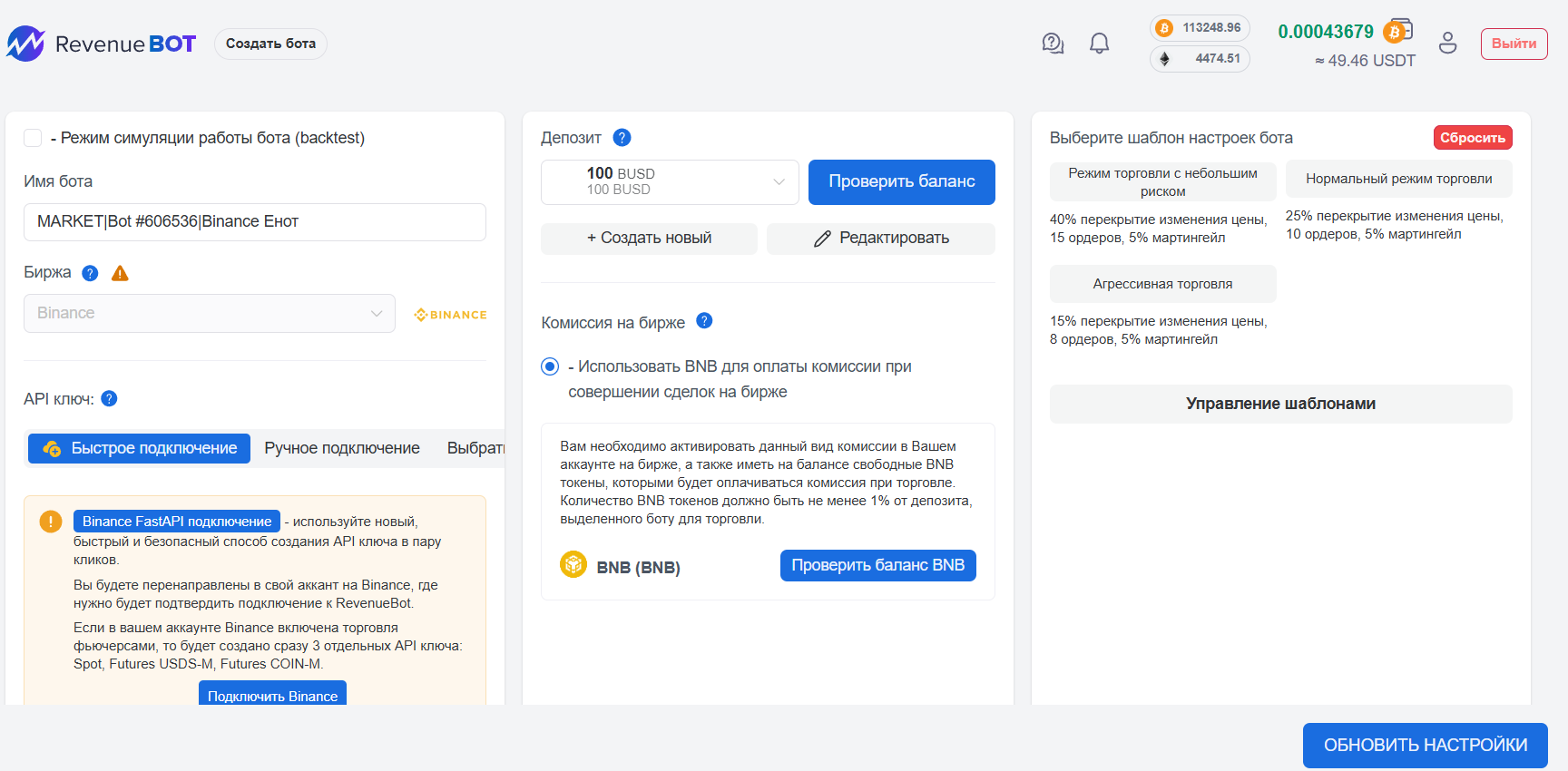 Почему стоит попробовать В автоматической торговле важно быстро запускаться, тестировать и масштабировать успешные настройки. RevenueBot позволяет пройти этот путь без лишних затрат на старте.