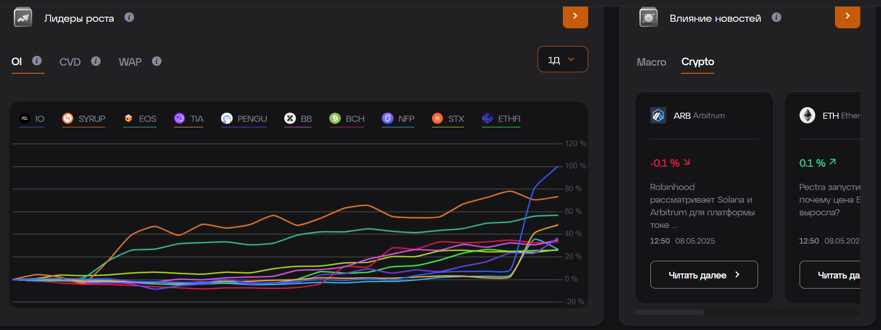 Там всё просто: минимальная задержка данных, стакан в реальном времени, сигналы по ордерам. Один из наших трейдеров ловит по 5–10 сделок за вечер только потому, что скринер вовремя подсветил нужную плотность или резкий вброс маркет-ордера.