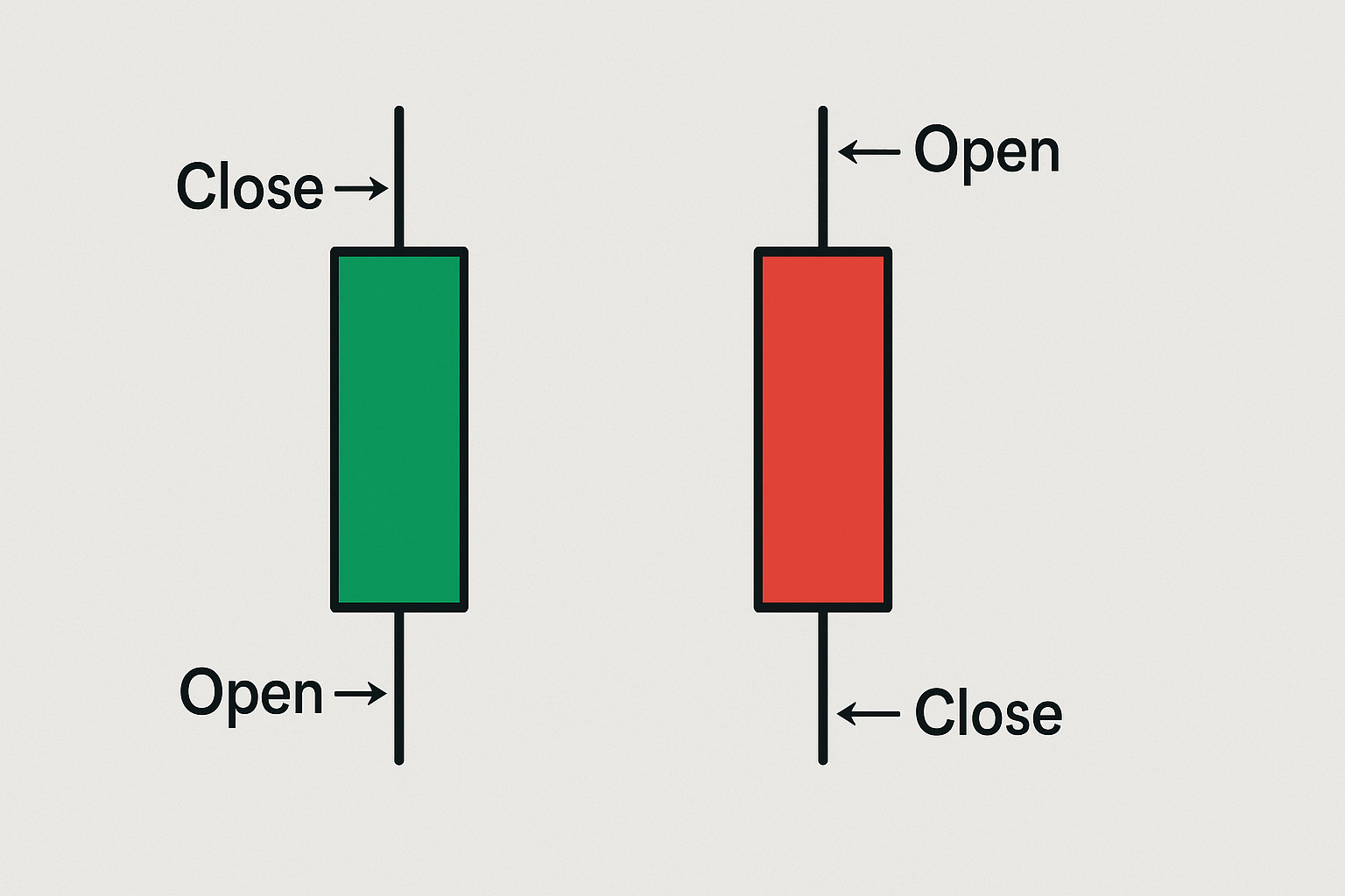 - Низ тела — цена открытия (для зелёной) или закрытия (для красной).